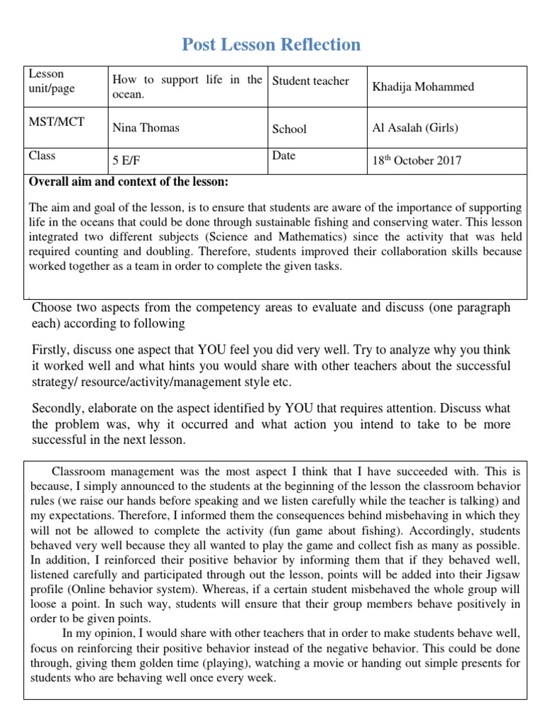 Reflection - Science Lesson. | PDF | Applied Psychology | Teachers