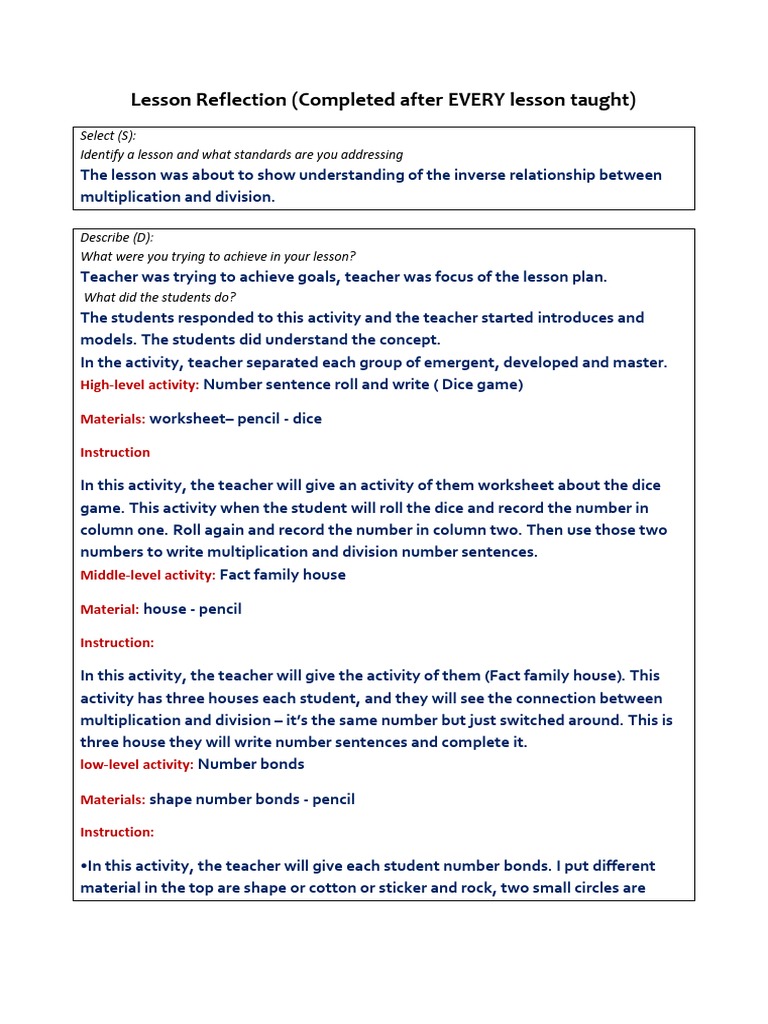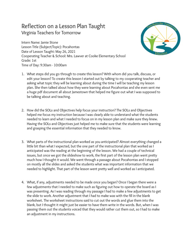 Lesson Plan Reflection by Angela Coleman | Teachers Pay Teachers