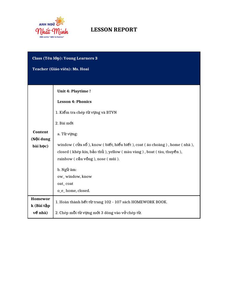 Lesson Report - U4 - L5 - Explorer 2 - LESSON REPORT Class (Tên l ớp ...