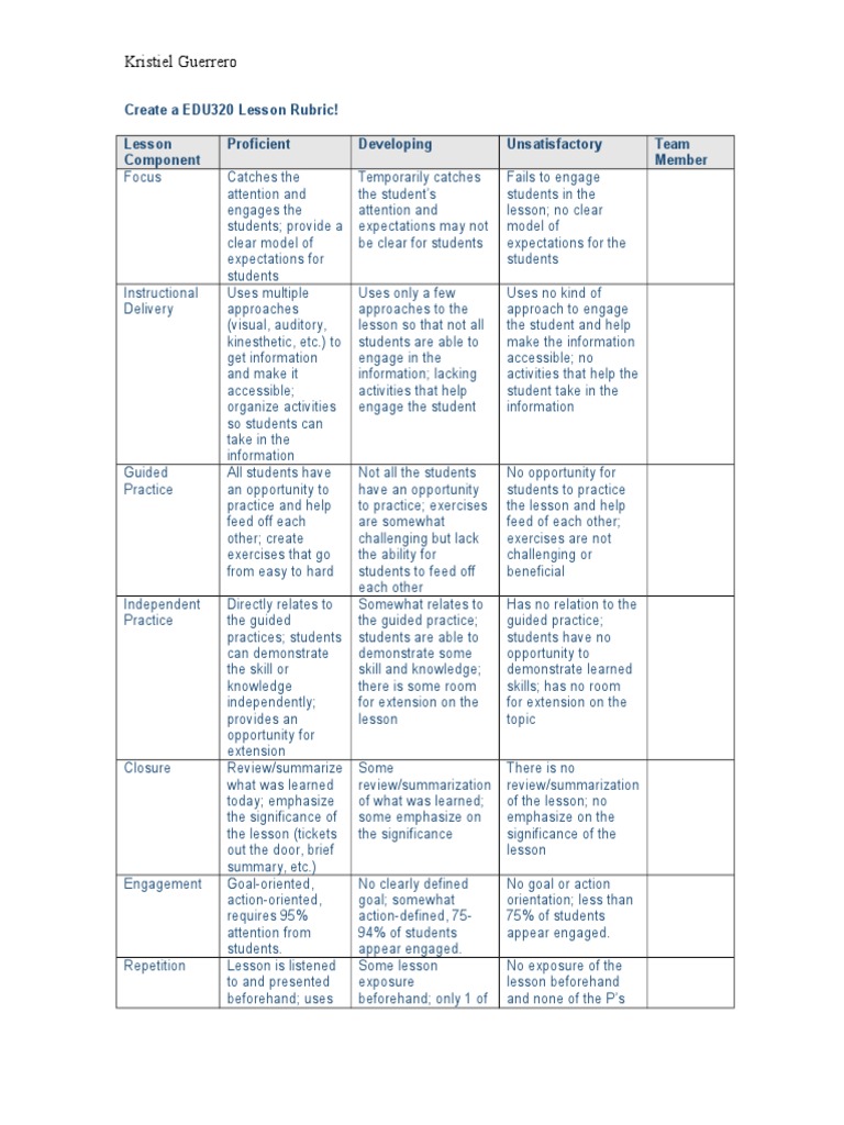 EDU 101: Lesson Plan Rubrics and Evaluation Criteria Guide - Studocu