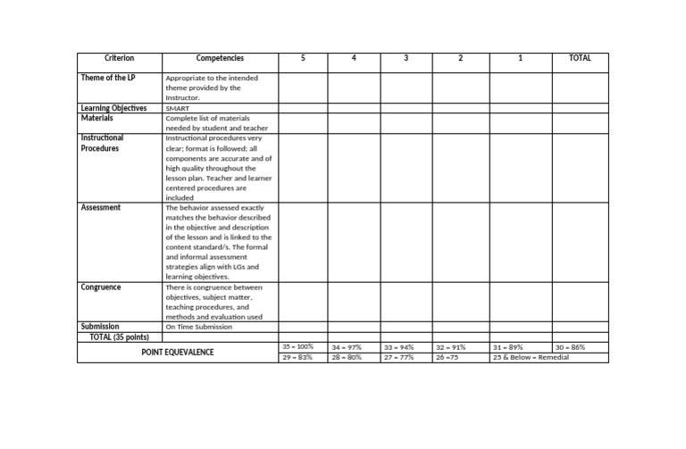 Lesson Plan Rubrics 1: Criteria for Assessment and Evaluation - Studocu