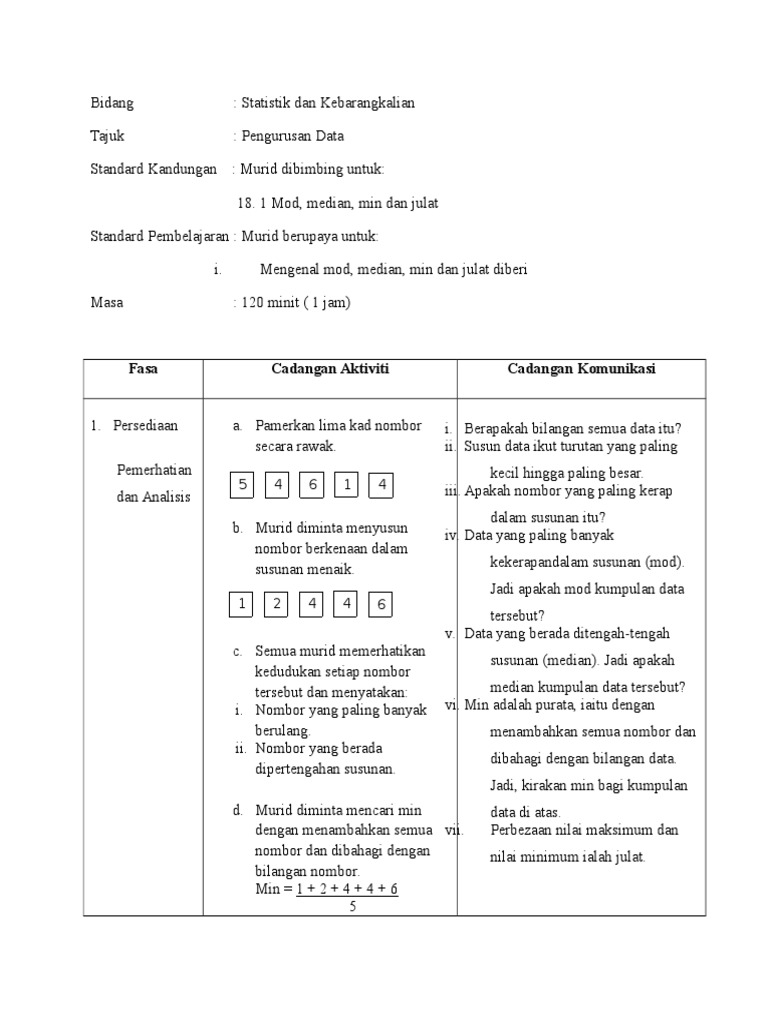 Lesson Plan: Statistics | PDF | Median | Mean