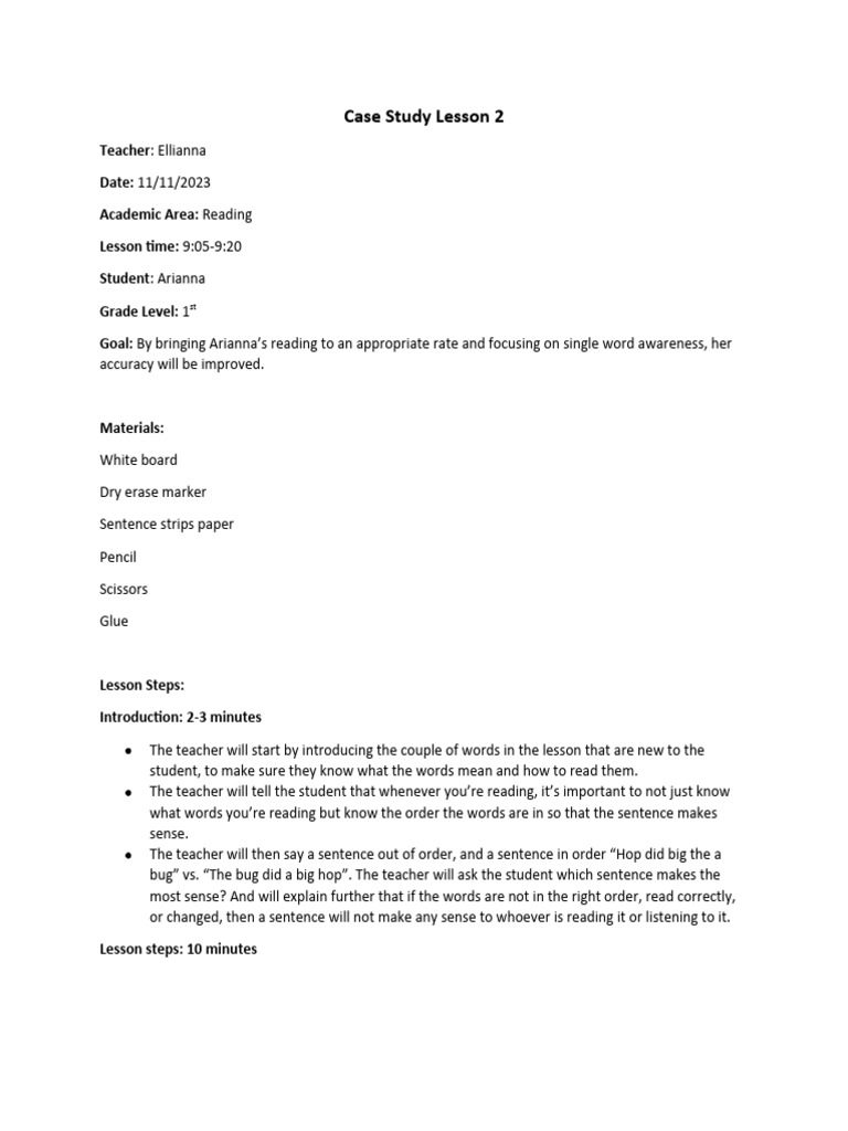 Case Study Lesson 2 | PDF | Human Communication | Learning