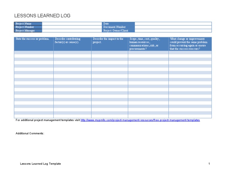 Lessons Learned Log Template