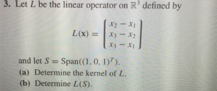 Solved Let L be a linear operator on R^3 defined by L(x) = | Chegg.com