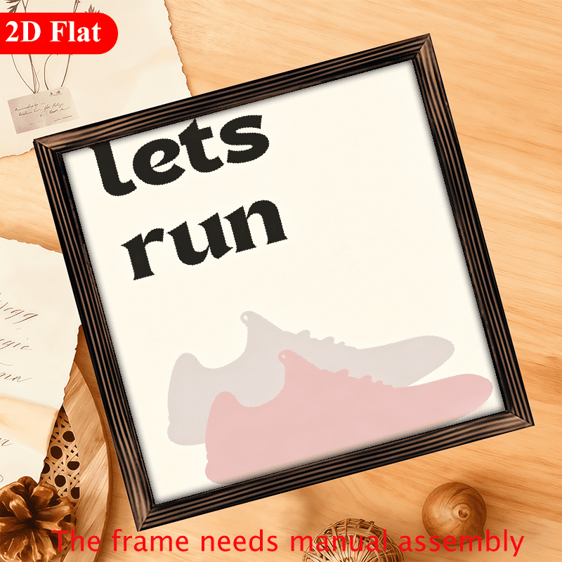 A 2D flat "lets run" wooden framed painting. For home Decorative Signs ...