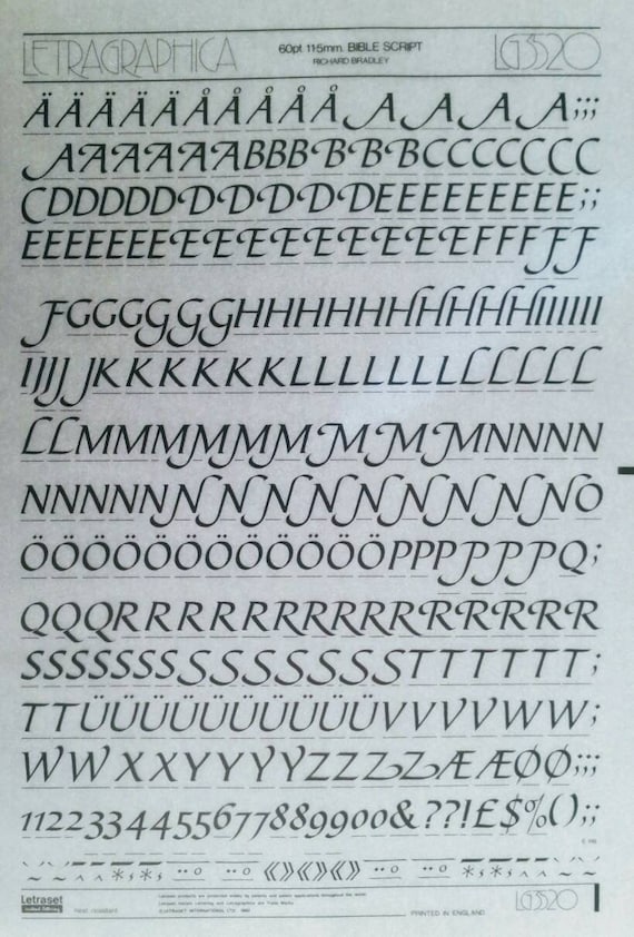ROMAN SCRIPT (72pt/54pt/42pt) Letragraphica Letraset Instant Rub on ...