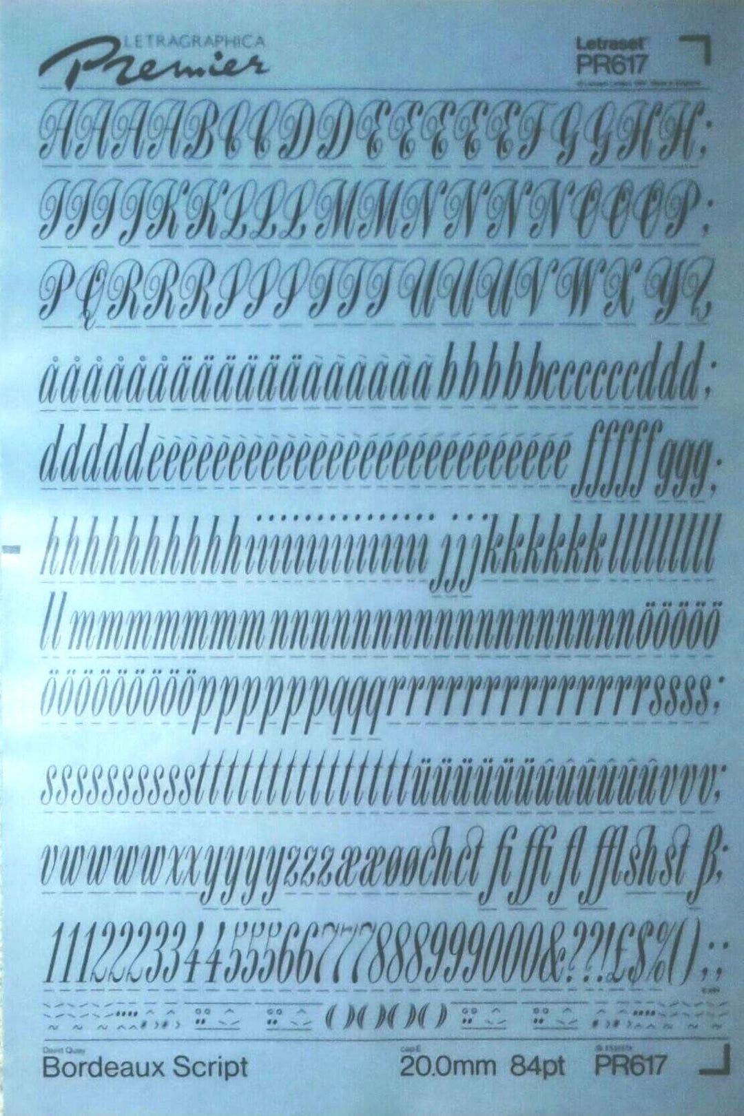 BORDEAUX SCRIPT (84pt) Premier Letraset Letragraphica Vintage Dry Rub ...