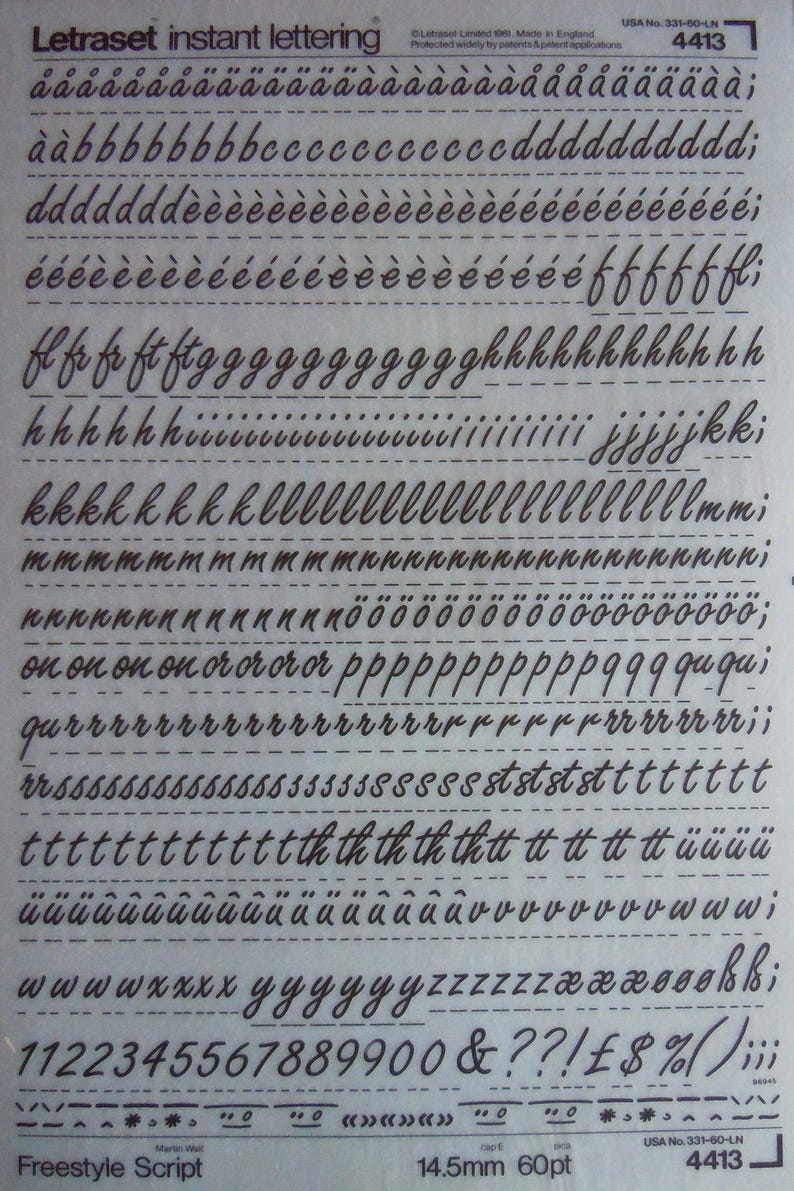 FREESTYLE SCRIPT 60pt/42pt/30pt Letraset Instant Rub on Letter ...