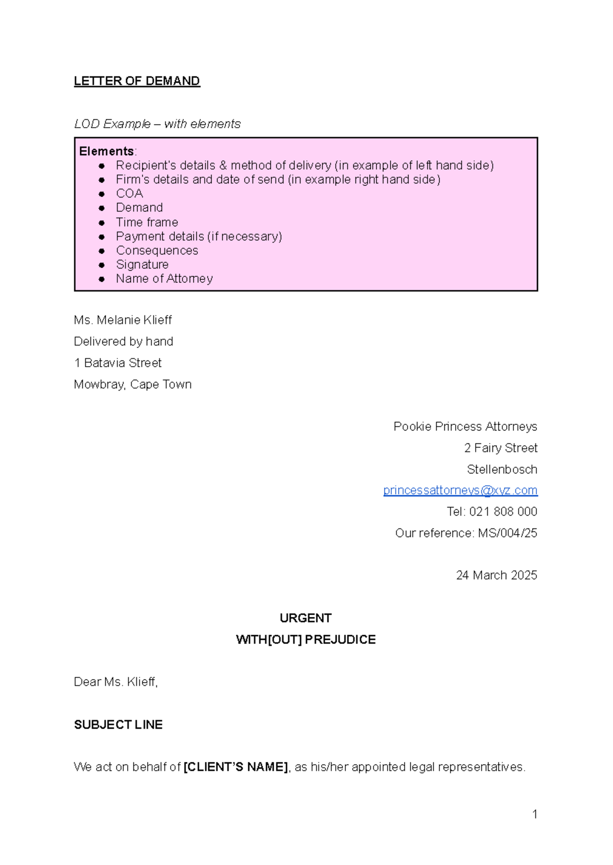 Letter of Demand (LOD) Example for Legal Representation - Studocu