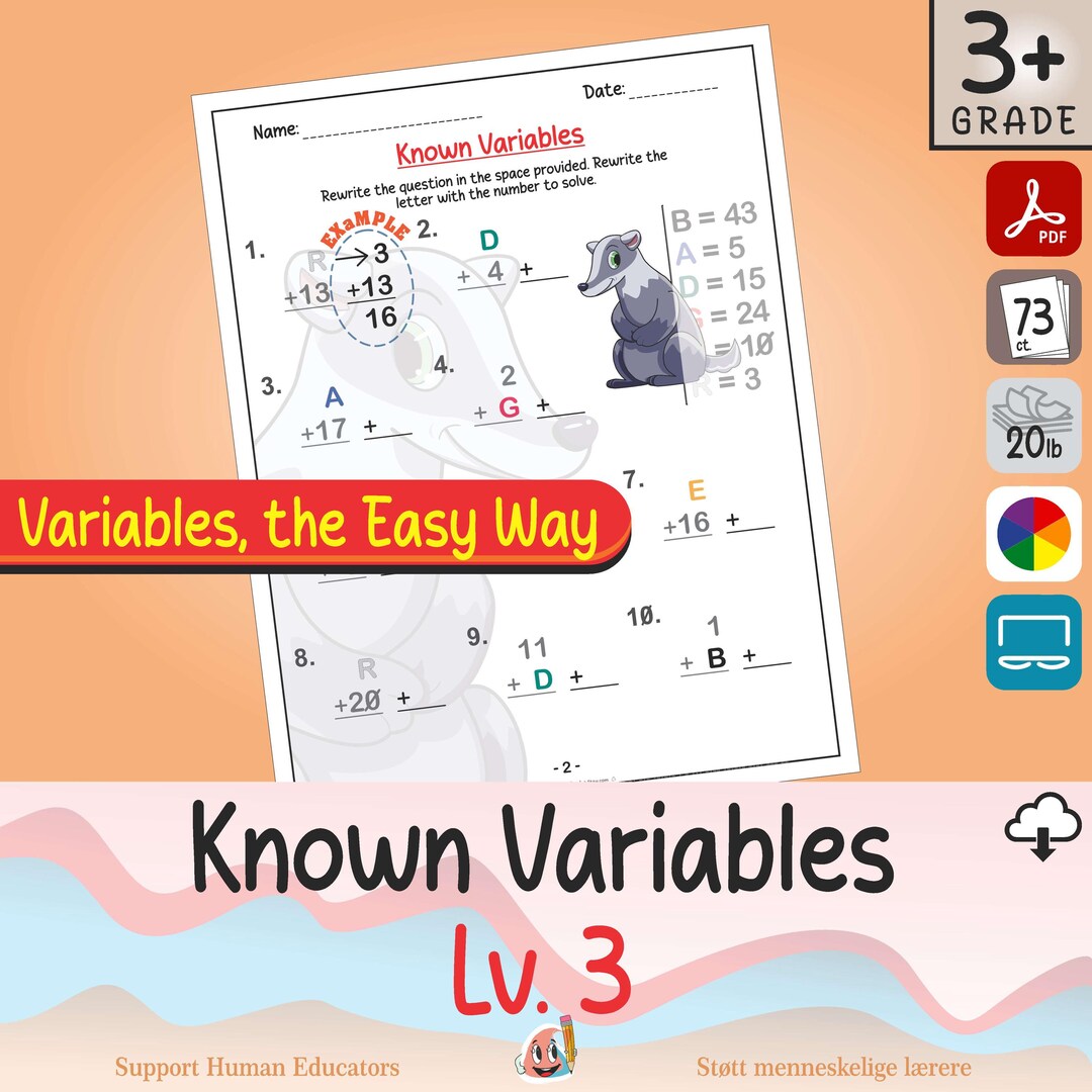 Known Variables - Level 3 – Math Printables for Early Algebra Mastery ...