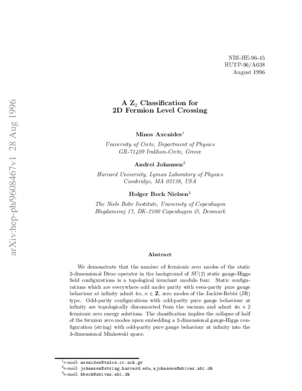 (PDF) A Z2 classification for 2D fermion level crossing