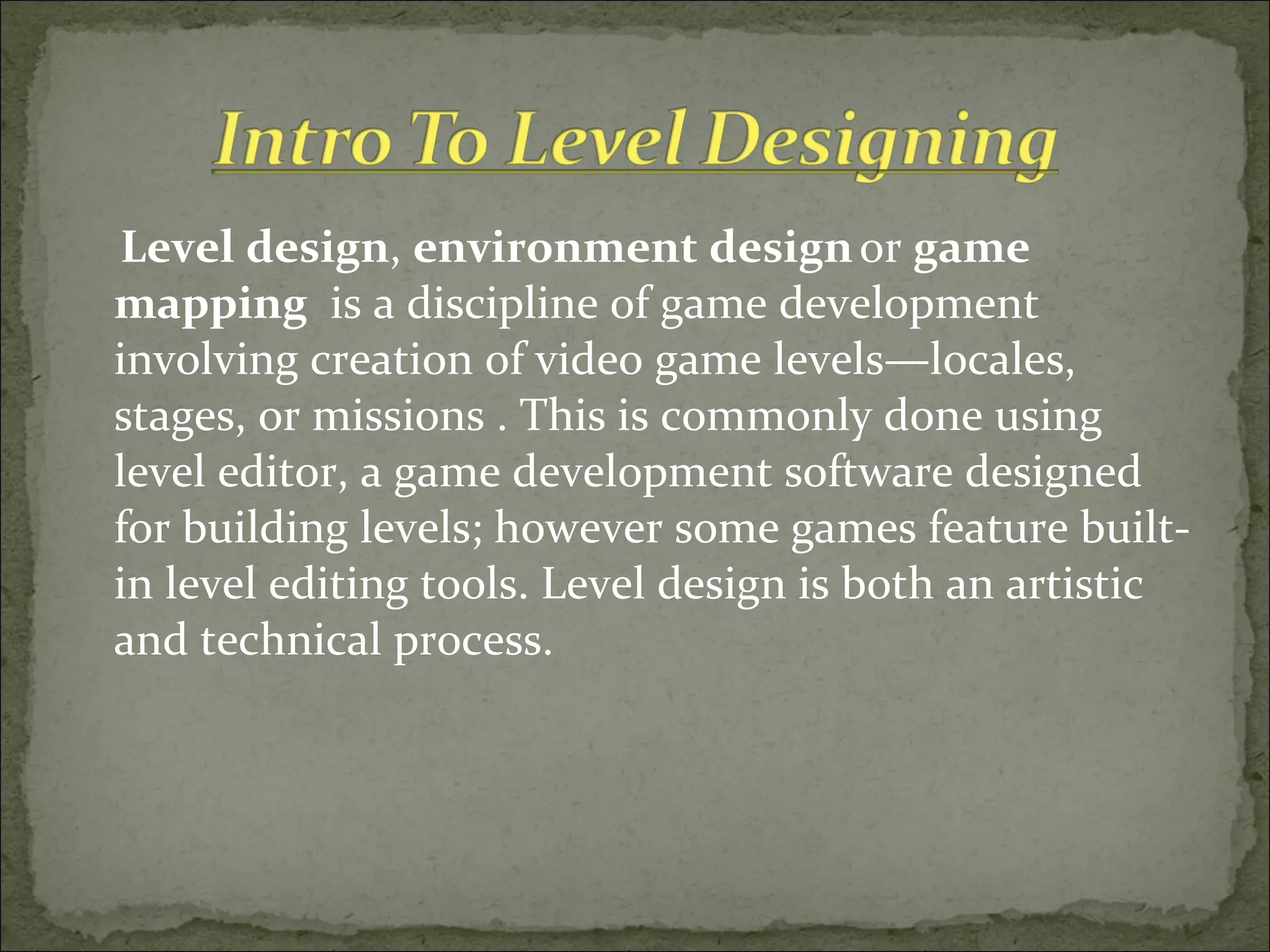Level design and devlopment part 1 introduction to level design | PPT