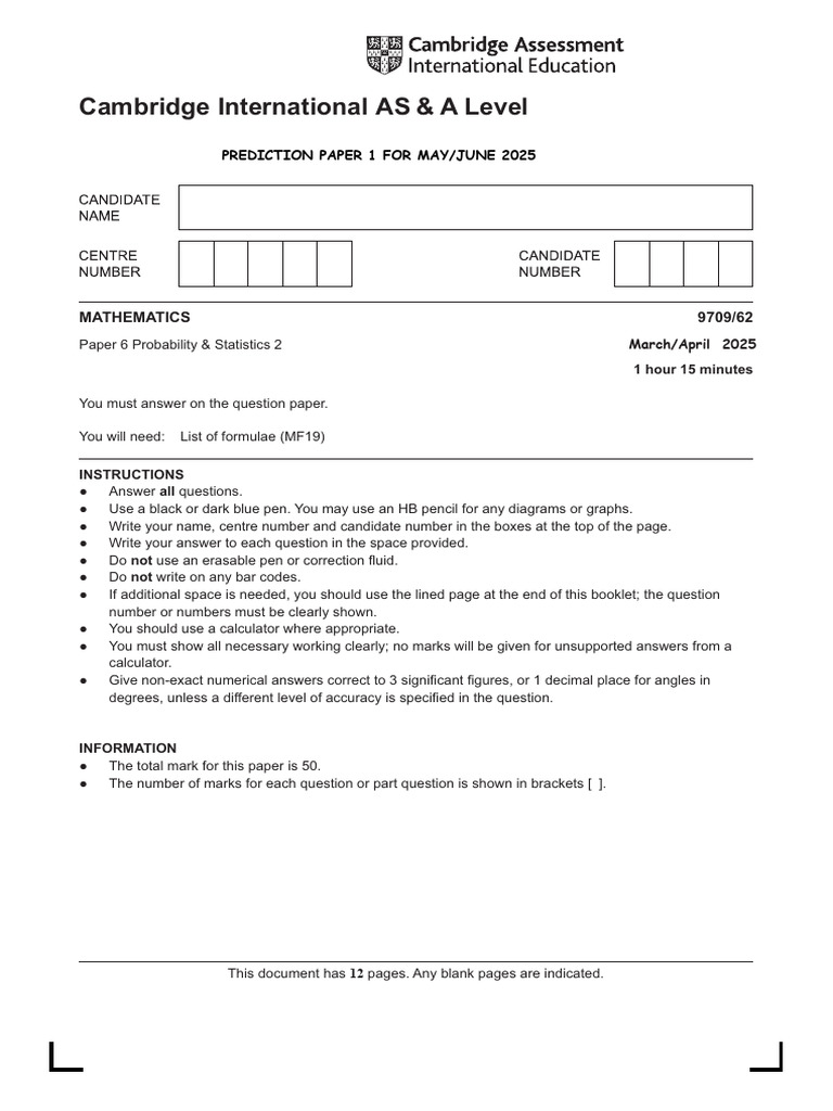 CIE As & A LEVEL PROB&STATS 2 PREDICTION PAPER 1 F 250730 122117 | PDF ...
