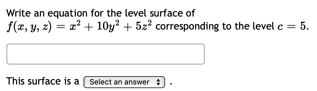 Solved Write an equation for the level surface of ƒ(x, y, z) | Chegg.com