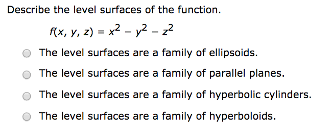 Solved Describe the level surfaces of the | Chegg.com