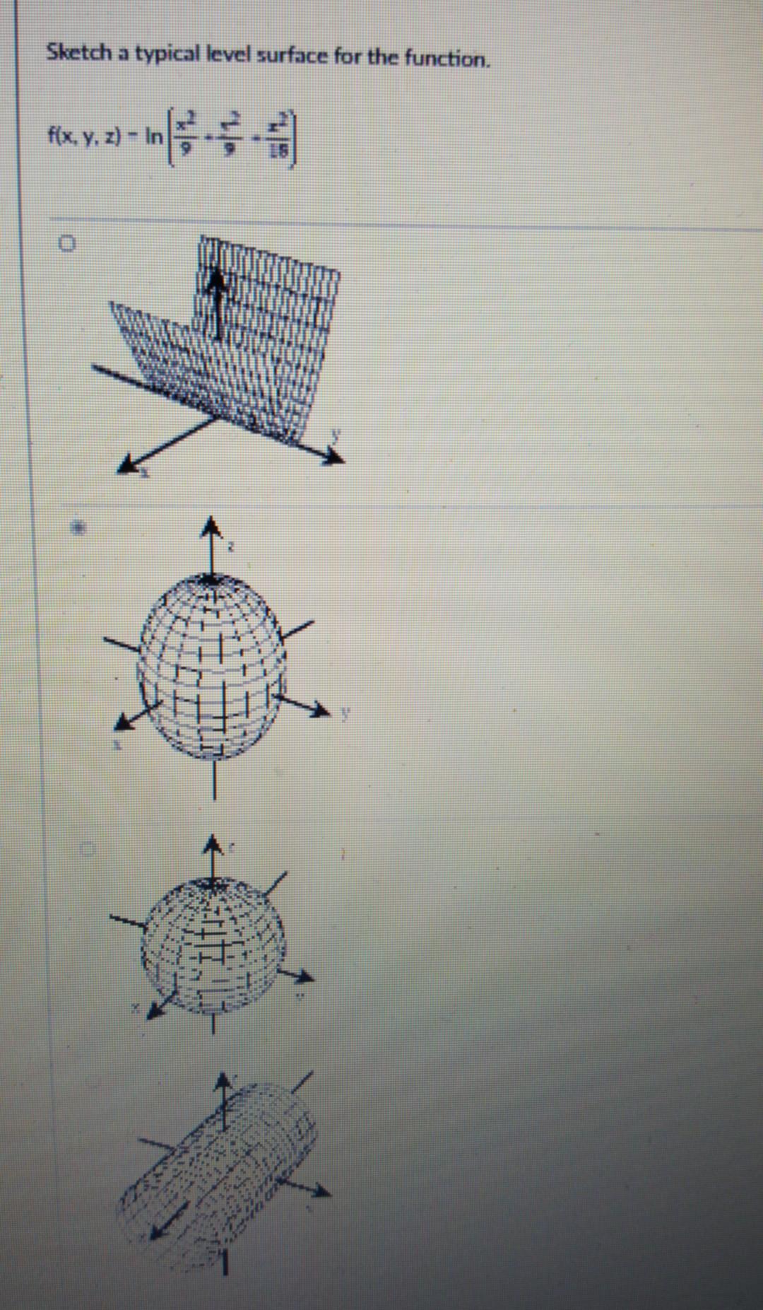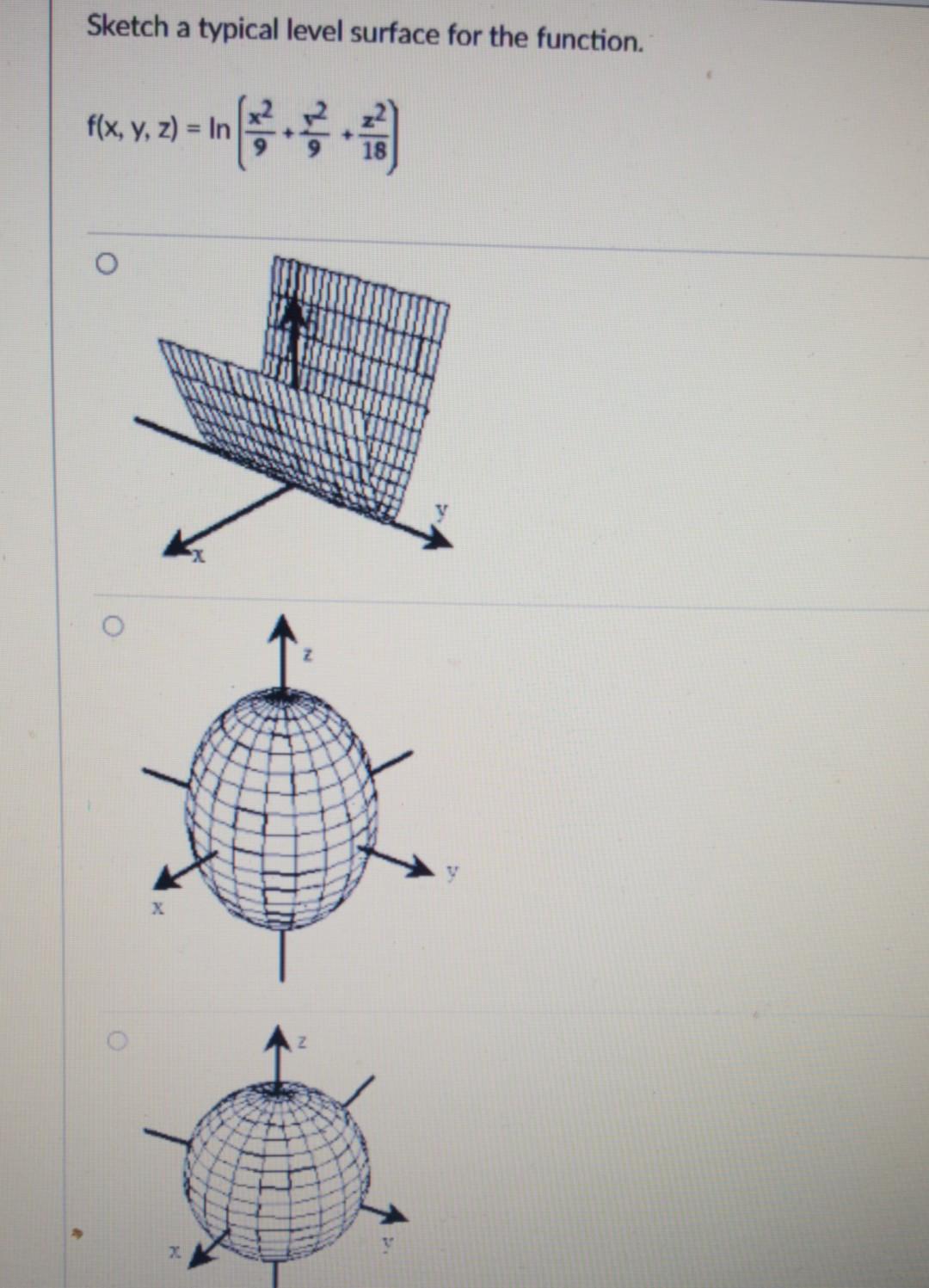 SOLVED:Sketch a typical level surface for the function. f(x, y, z)=ln(x ...