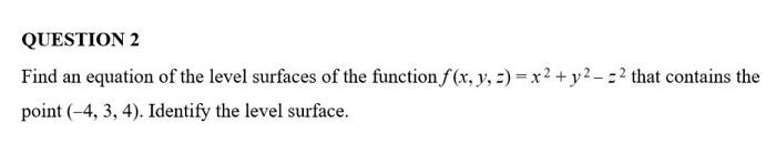 Solved QUESTION 2 Find an equation of the level surfaces of | Chegg.com