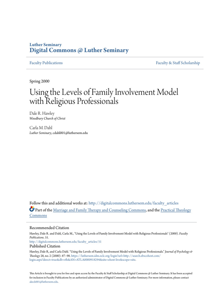 Levels of Family Involvement Model With Religious - 2000 | PDF ...