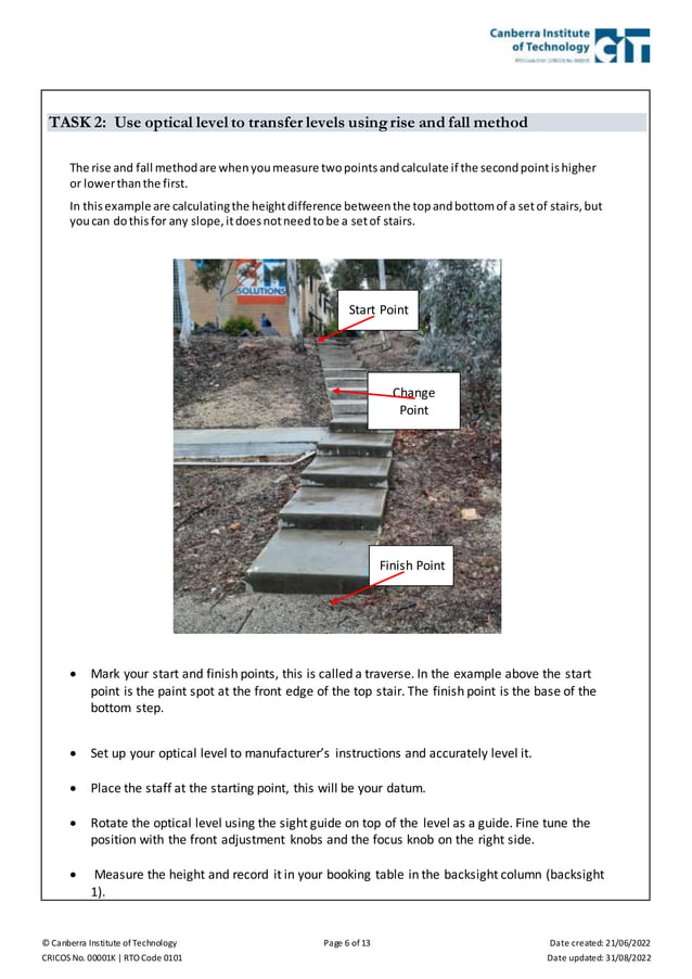 2. Practical assessment Carry out Levelling Operations | DOCX