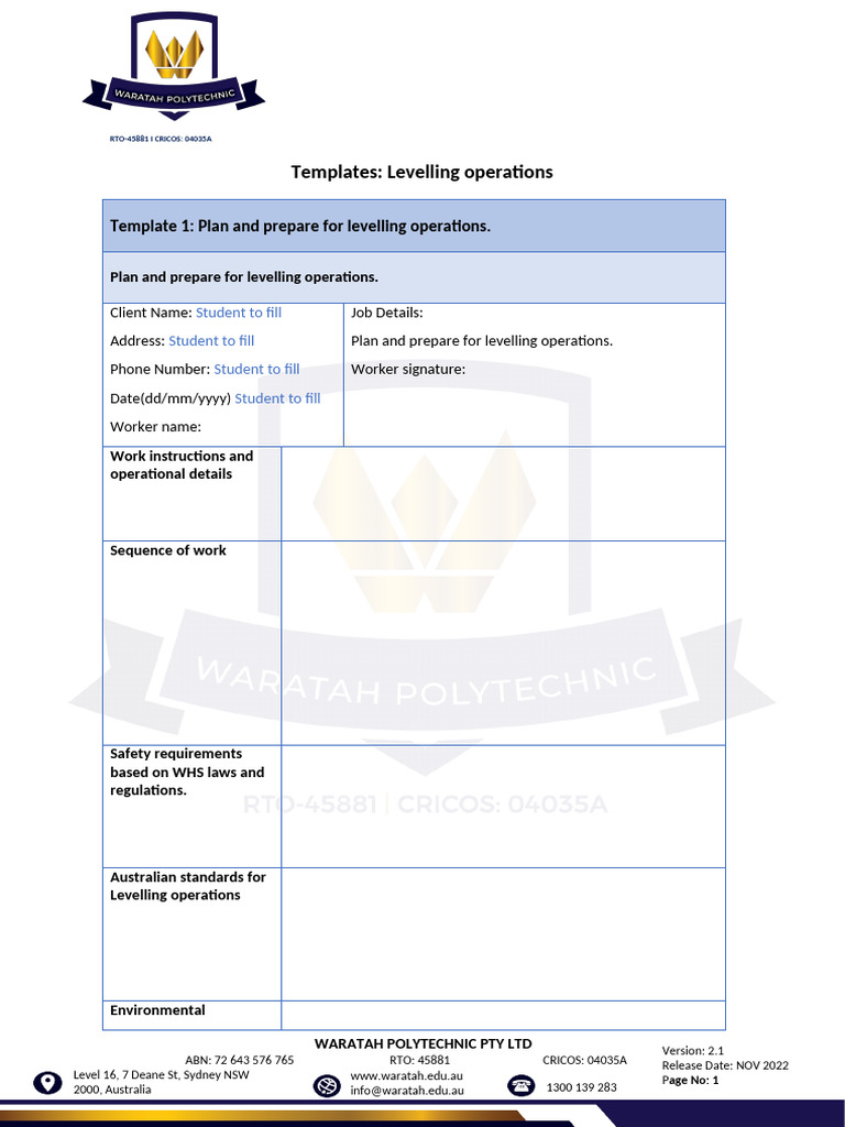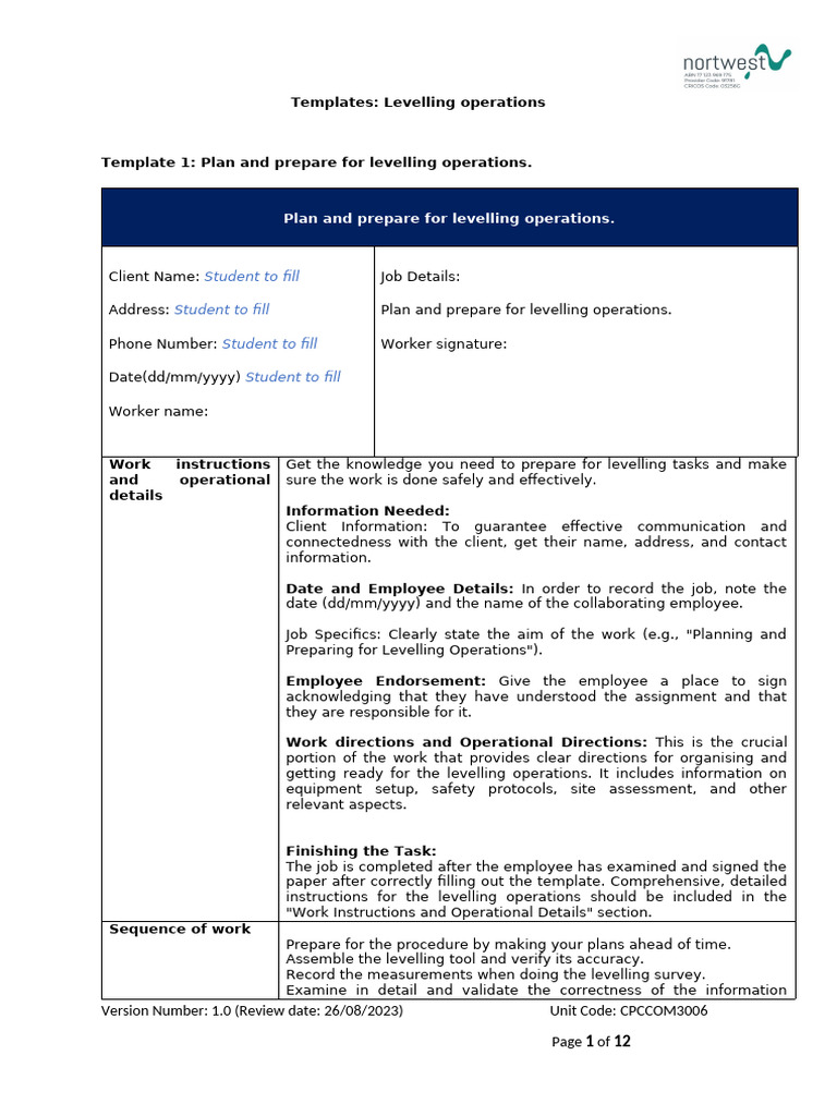 Levelling Operation 7 Templates | PDF