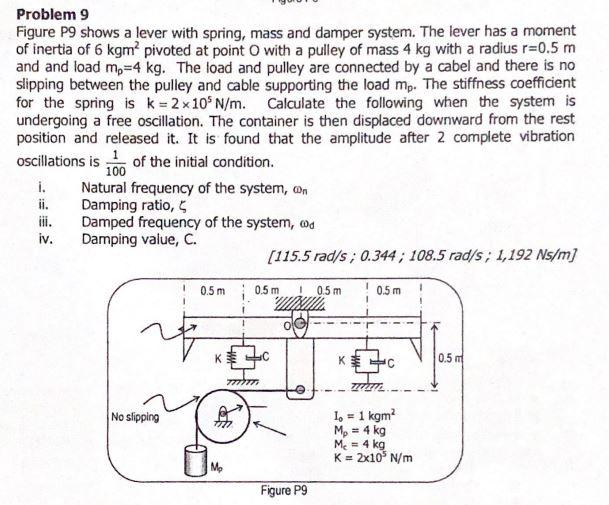 Problem 9 Figure P9 shows a lever with spring, mass | Chegg.com