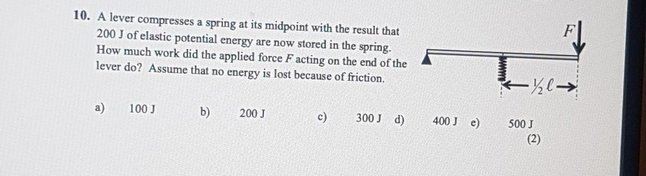 Solved 10. A lever compresses a spring at its midpoint with | Chegg.com