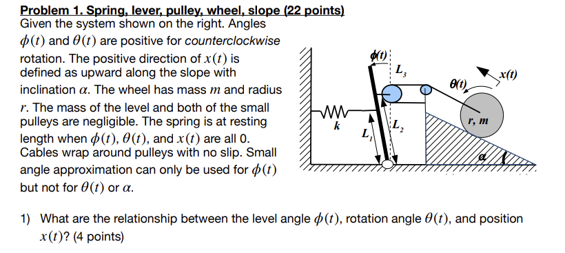 Solved L; X(t) at) Problem 1. Spring, lever, pulley, wheel, | Chegg.com