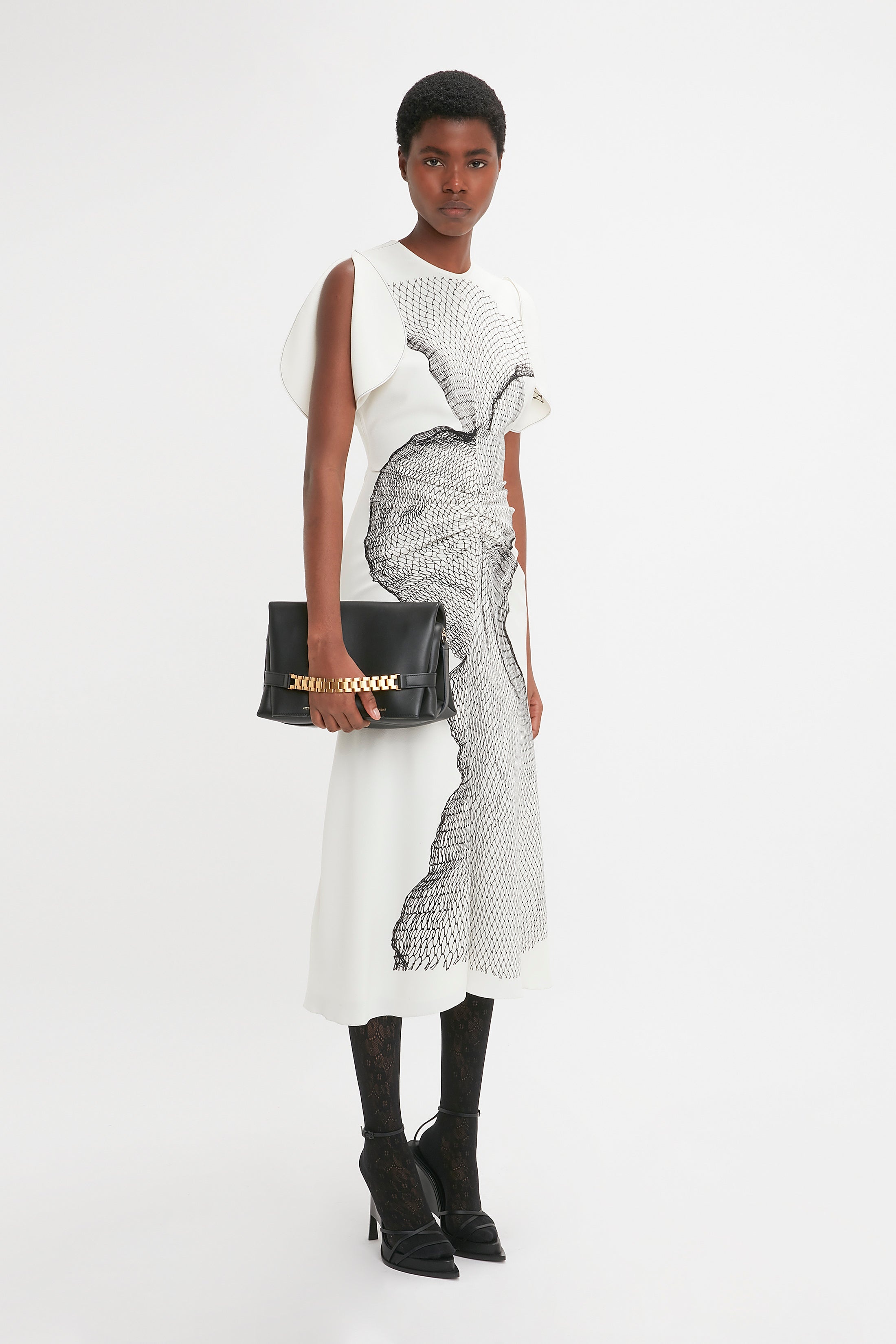 Victoria Beckham Gathered Waist Midi Dress In White-Black Contorted Net ...