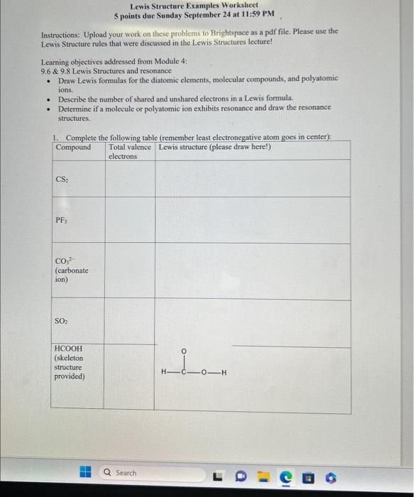 Solved Lewis Structure Examples Worksheet 5 points due | Chegg.com