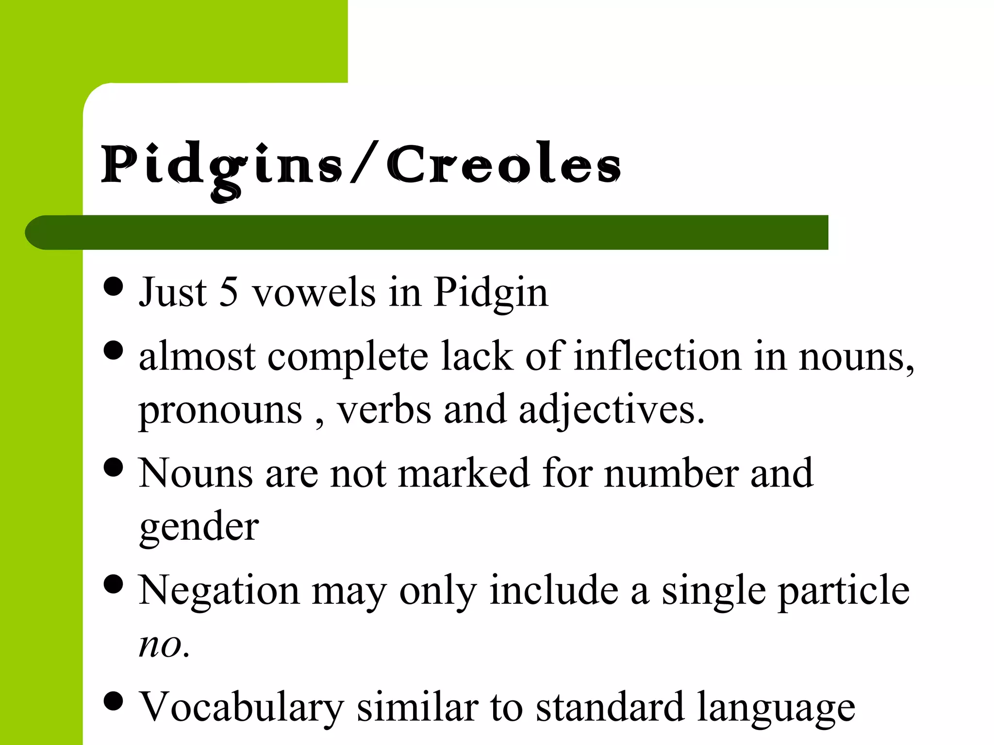 Pidgins creoles - sociolinguistics | PPT