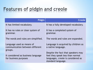 Pidgin and creole | PPTX