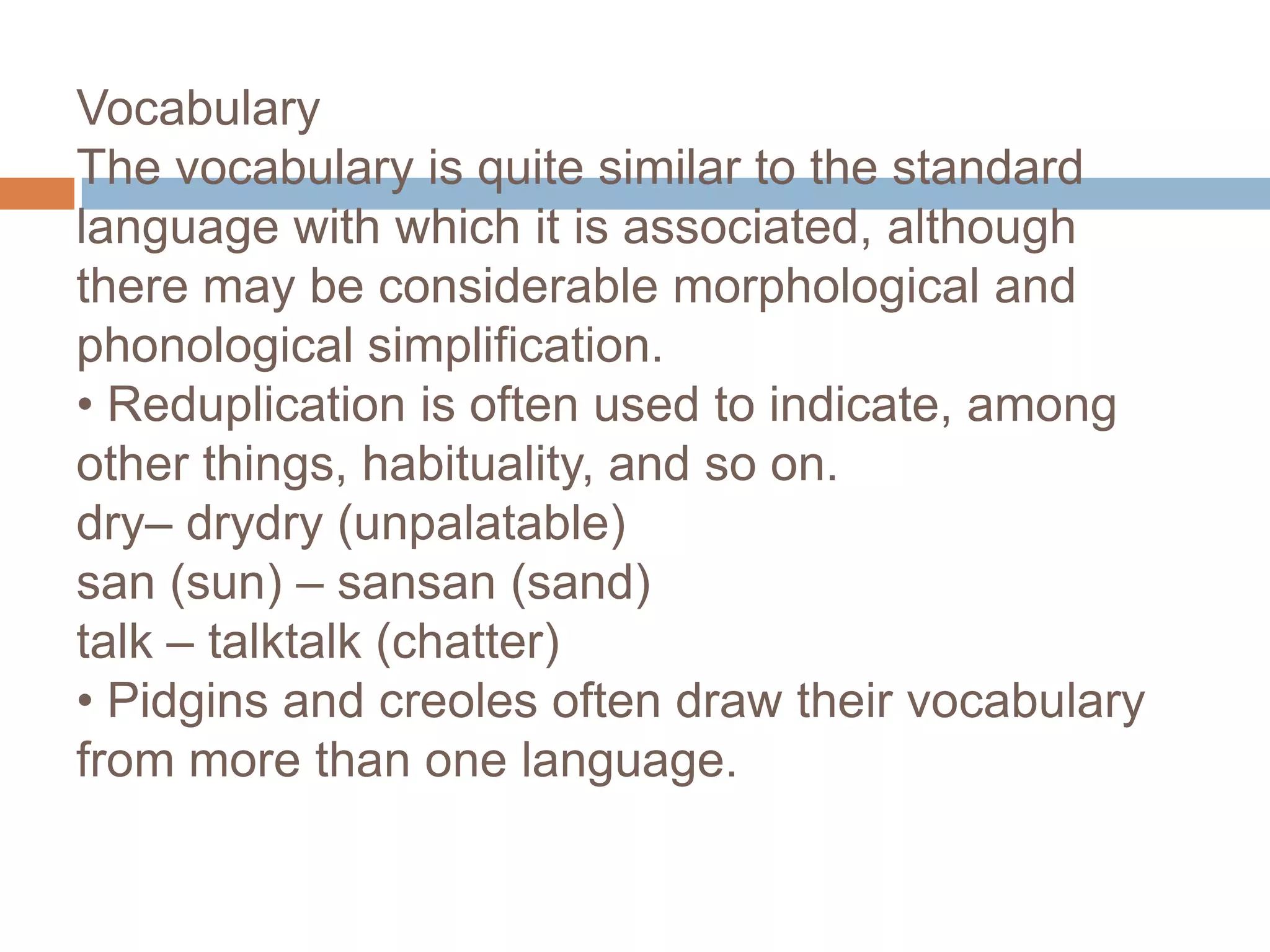 Creole and Pidgin Languages. General Characteristics | PPT
