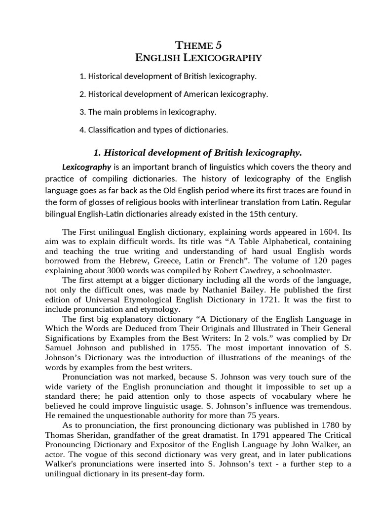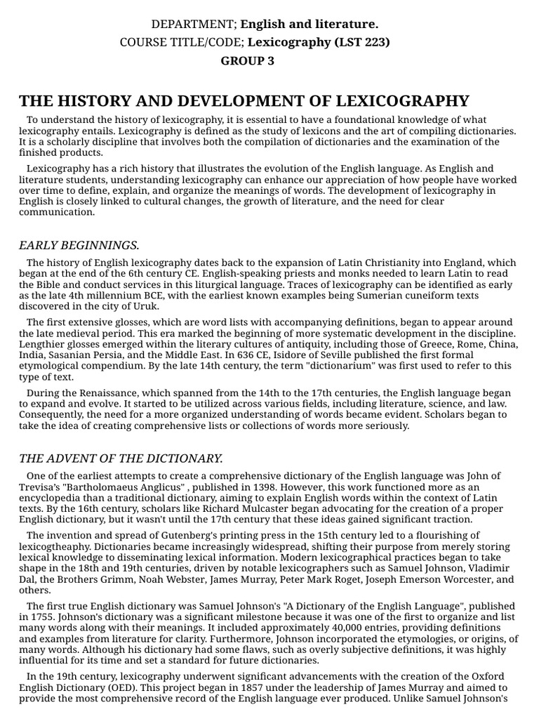 History of Lexicography Explained | PDF | Lexicography | Dictionary