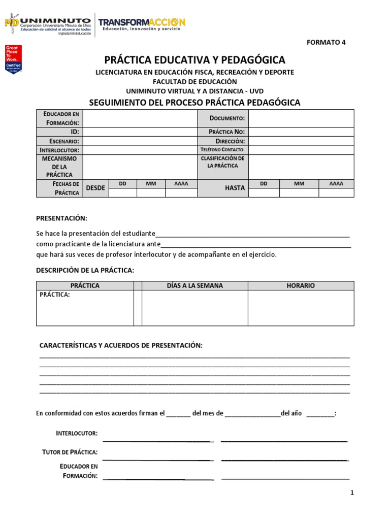Formato 4 Seguimiento Del Proceso Práctica Pedagógica I - LFDD | PDF ...