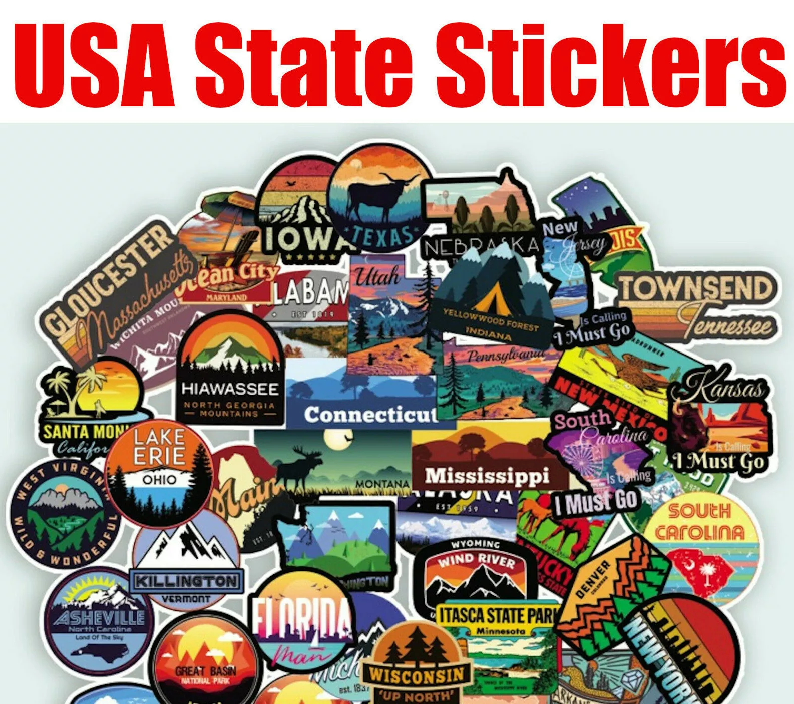 CRESTIN- 50 Pcs Usa State Stickers Travel United States Of America ...