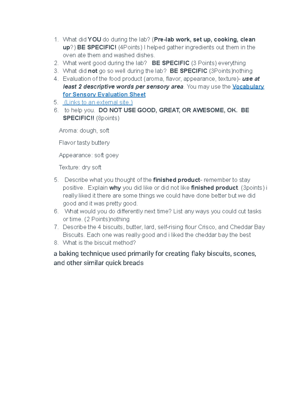 Lab Report: Evaluation of Biscuit Making Process (Culinary 101) - Studocu