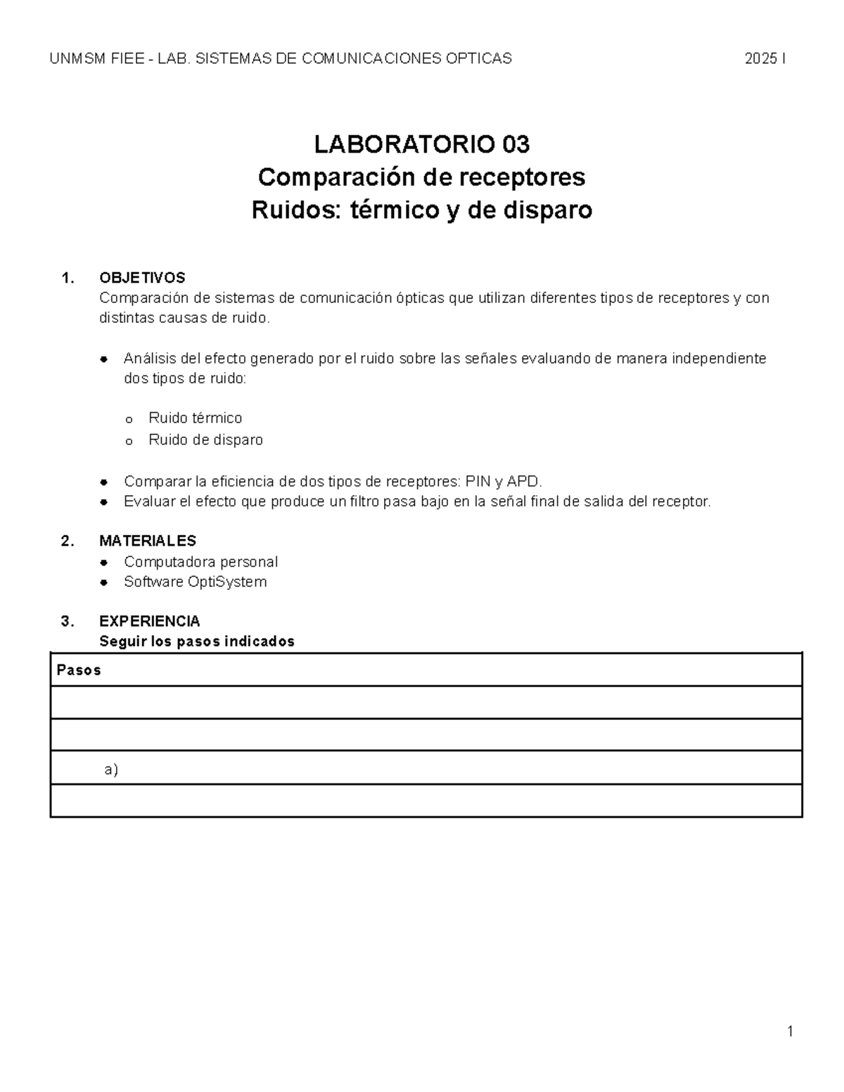 UNMSM FIEE LAB 2025 I: Comparación de Receptores y Ruidos - Studocu
