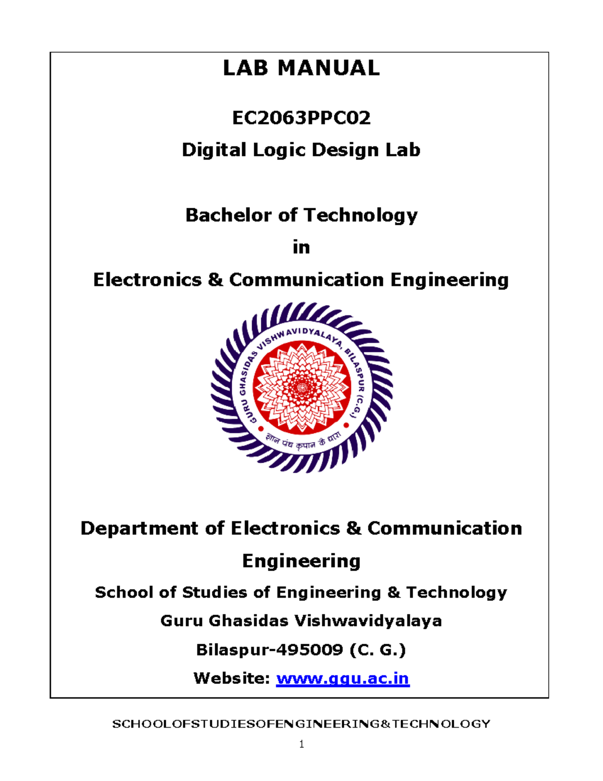 Digital Logic Design Lab Manual EC2063PPC02 for B.Tech ECE - Studocu