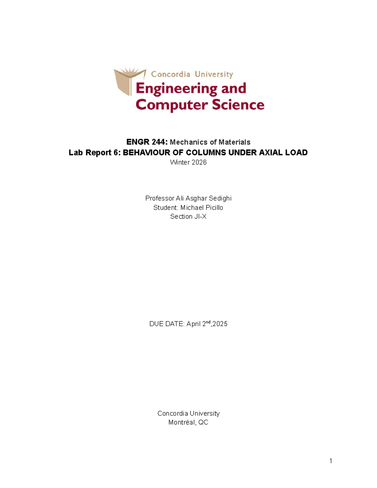 ENGR 244: Lab Report 6 - Behavior of Columns Under Axial Load - Studocu