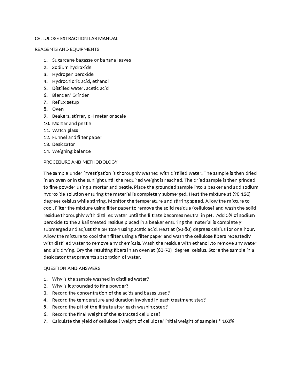 CELL 101: Cellulose Extraction Lab Manual & Procedures - Studocu