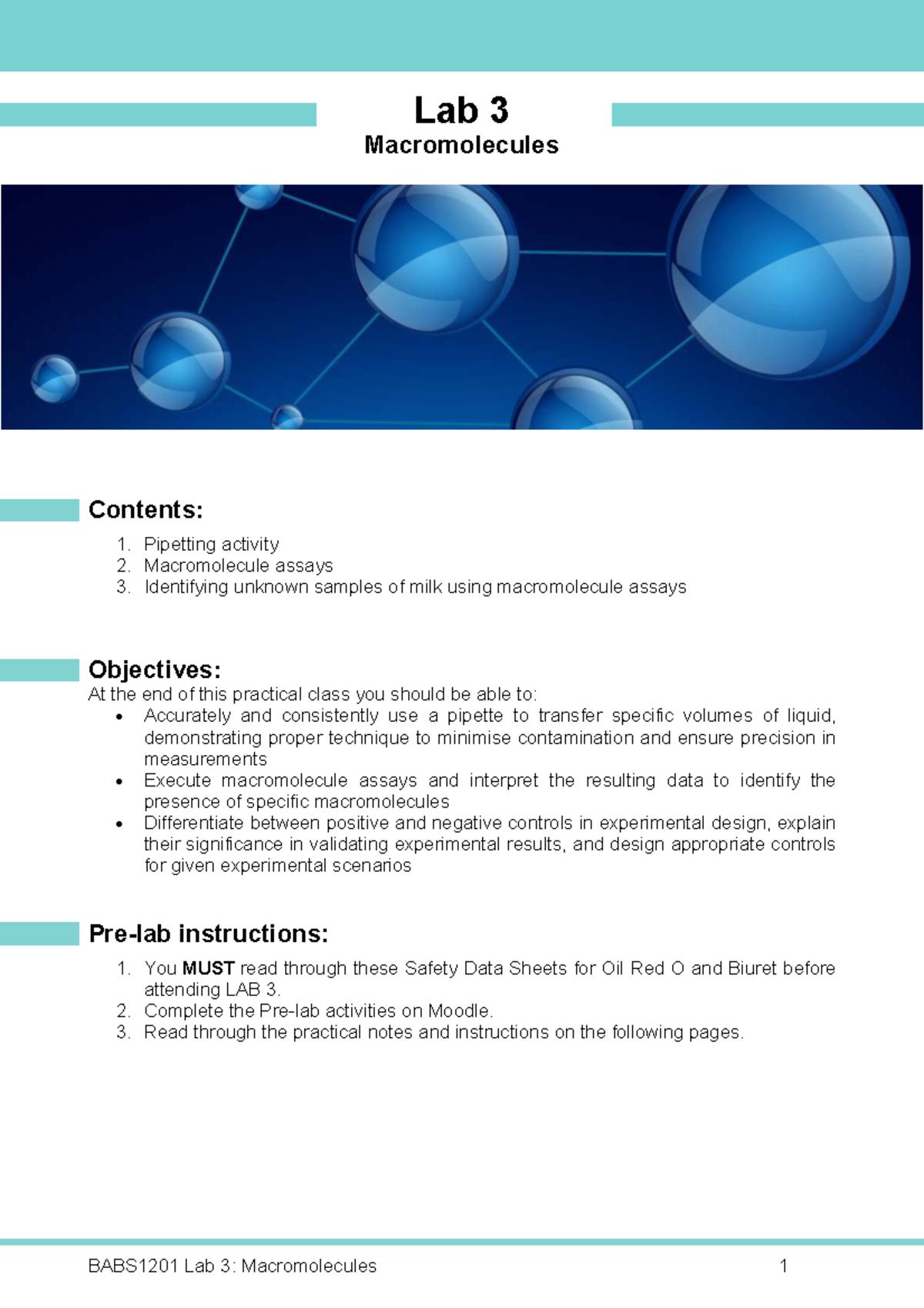 BABS1201 Week 3 Lab 3: Macromolecules Practical Guide - Studocu