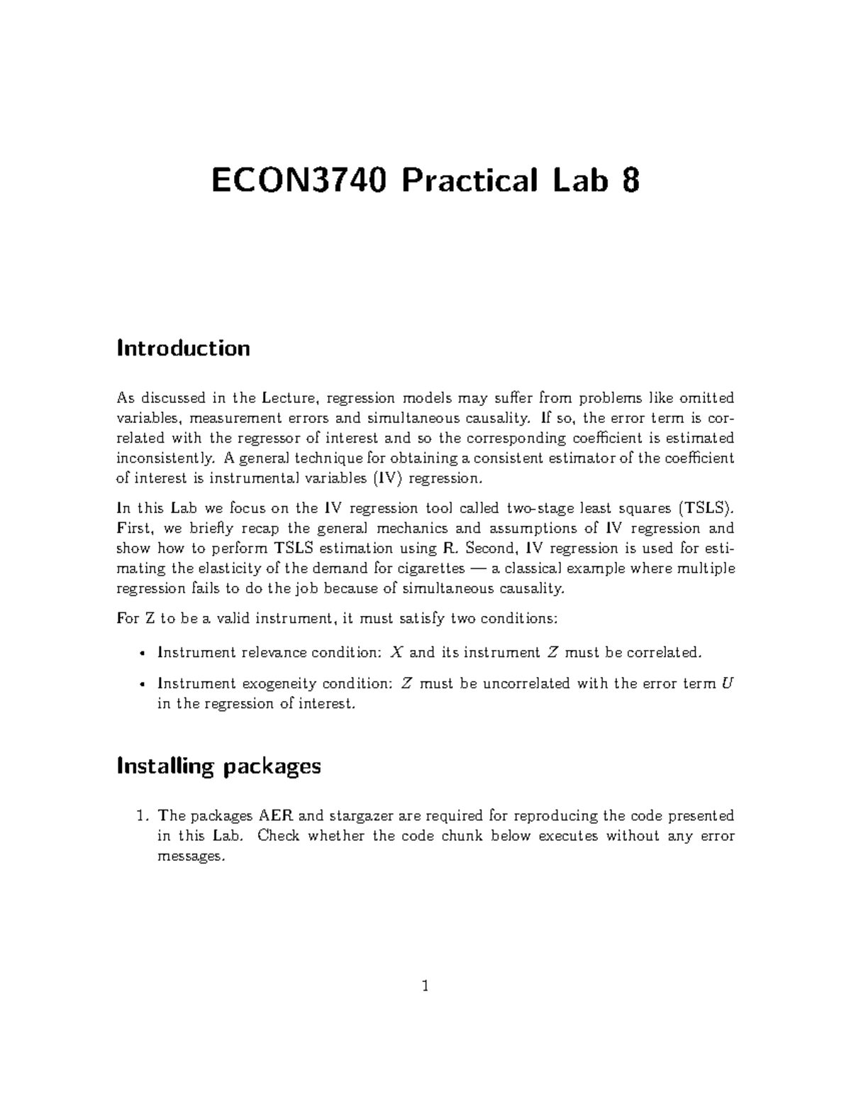 ECON3740 Lab 8: Instrumental Variables & TSLS Regression Analysis - Studocu