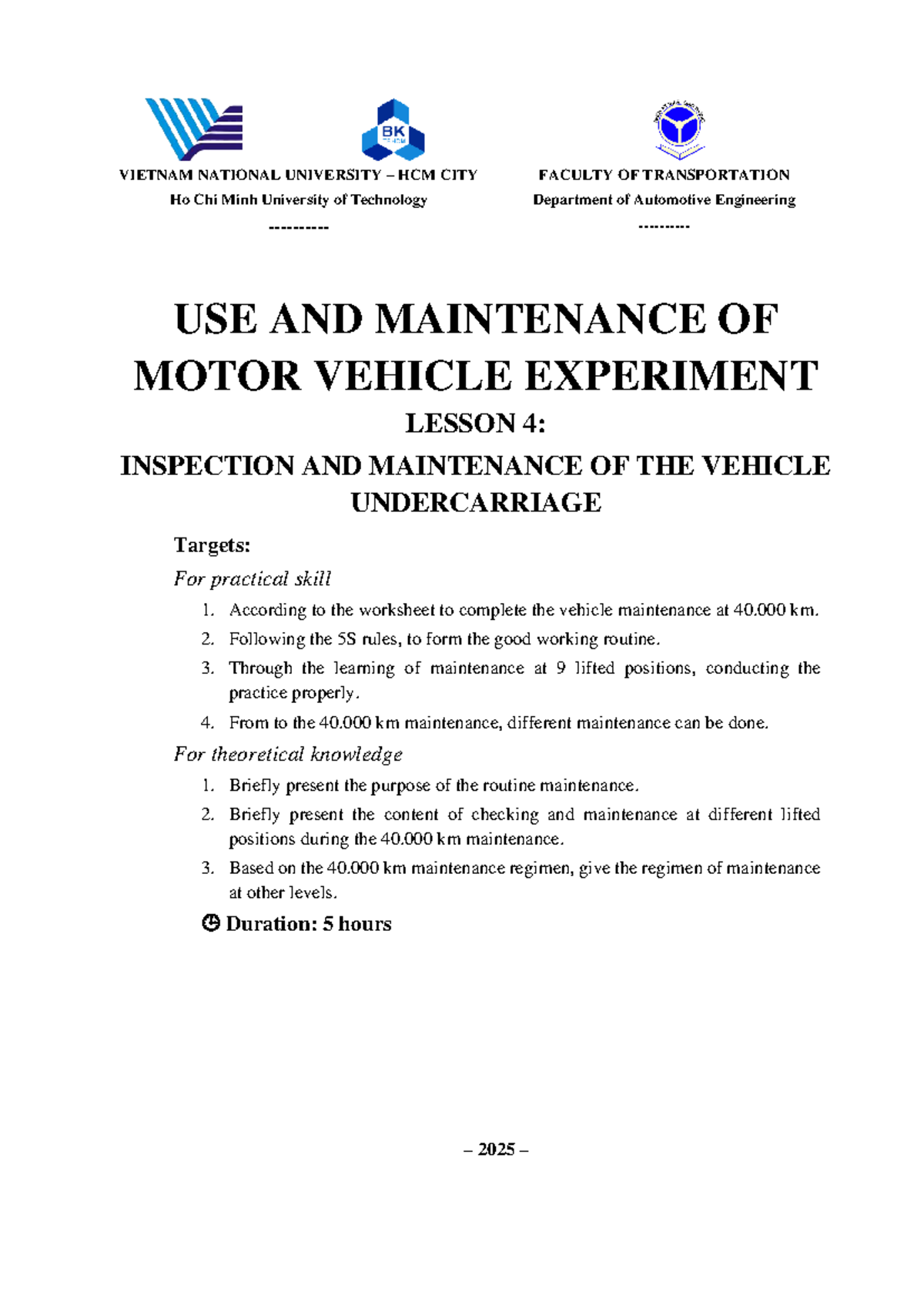 L4 Lab: Inspection & Maintenance of Vehicle Undercarriage HK242 - Studocu