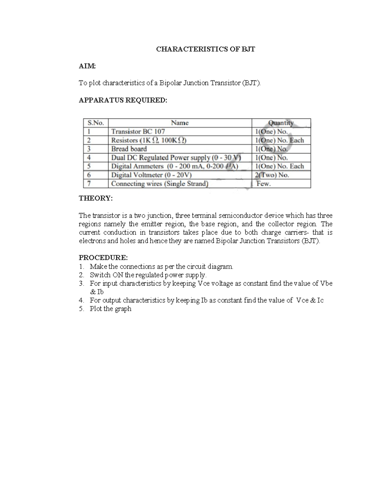 BE3272 Lab Manual: BJT & LVDT Characteristics Analysis - Studocu
