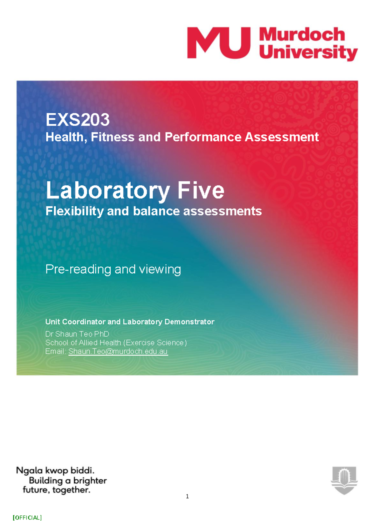 EXS203 Lab 05: Flexibility & Balance Assessments Overview - Studocu