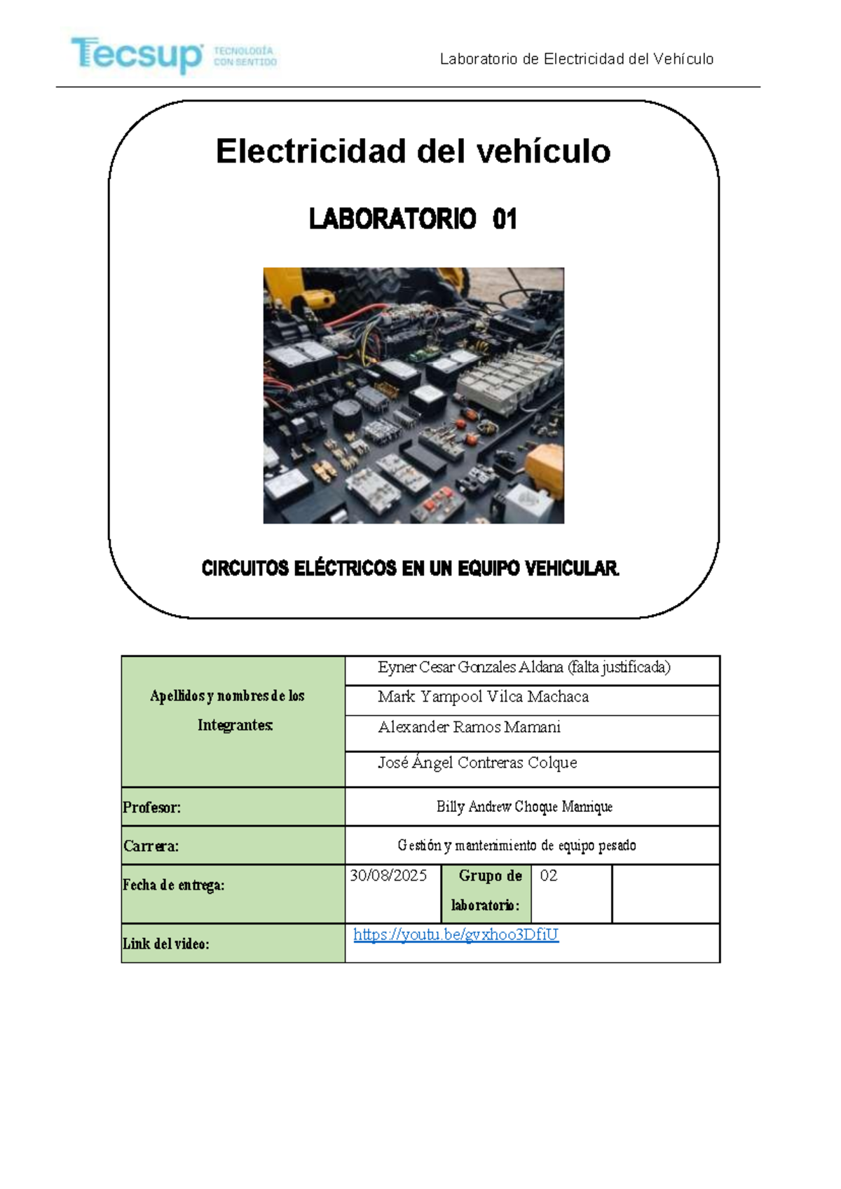 LAB 01 - Electricidad del Vehículo: Prácticas y Mediciones - Studocu