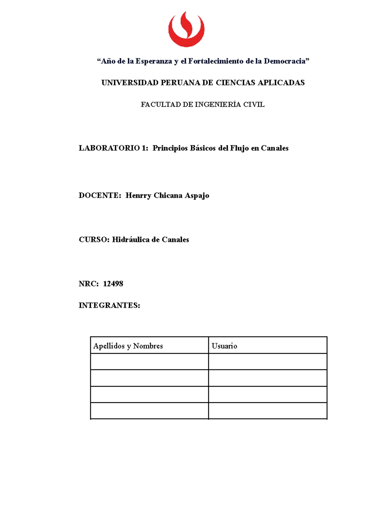 LAB 1: Principios del Flujo en Canales - Hidráulica de Canales NRC ...