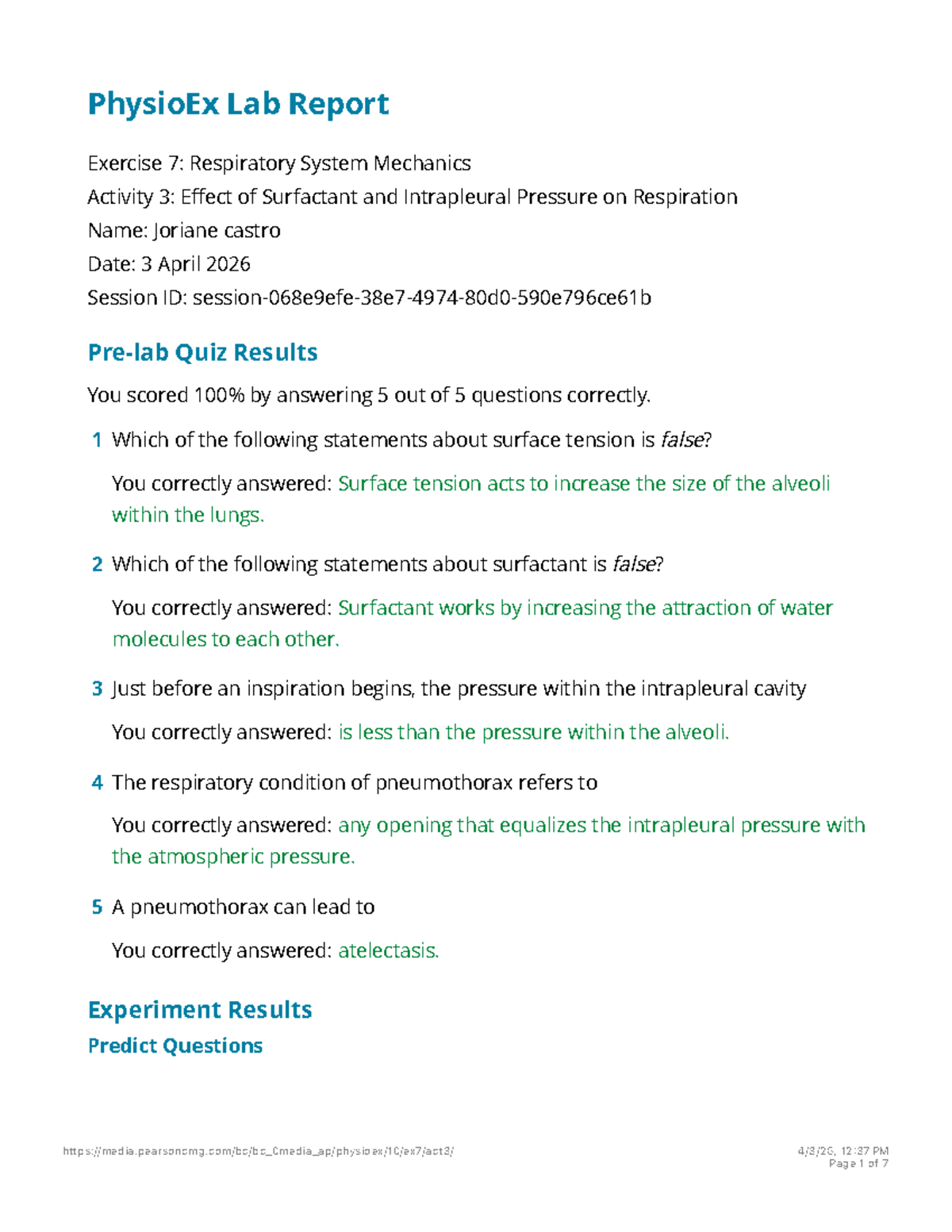 PhysioEx Lab Report: Exercise 7 - Respiratory System Mechanics - Studocu
