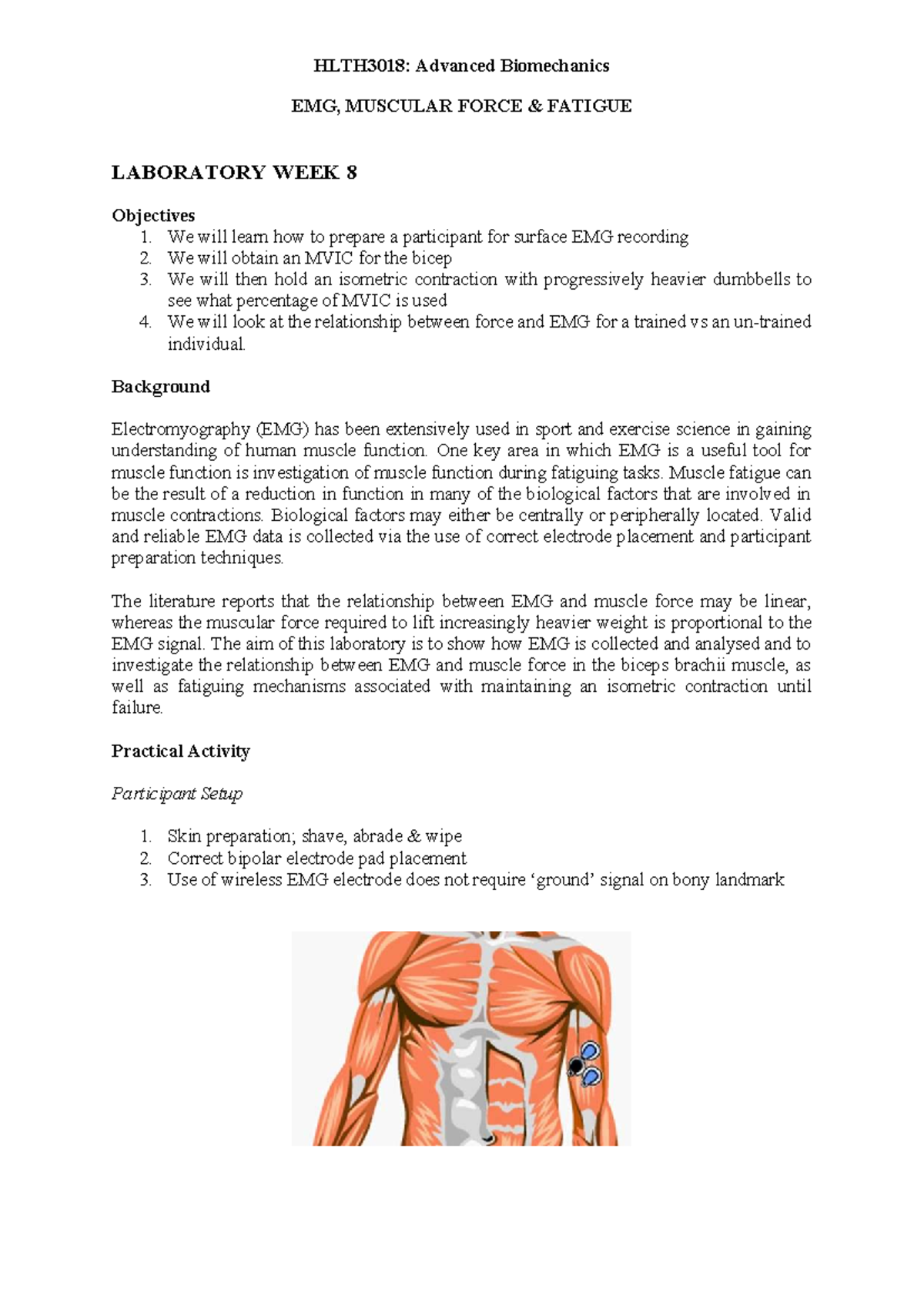 HLTH3018: Lab 8 - EMG and Muscular Force Fatigue Analysis - Studocu